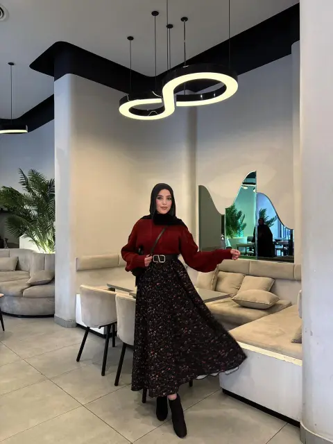بلوفر بطول 55 سم مع سكيرت دبل كلوش متبطنة بطول 110 سم ✨
